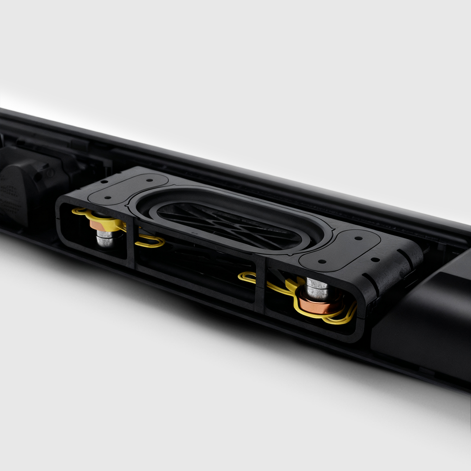 Rivelia boasts a powerful 40W omnidirectional output and 3.1 channels, complete with a wireless subwoofer that transforms this soundbar into the perfect complement for your television.